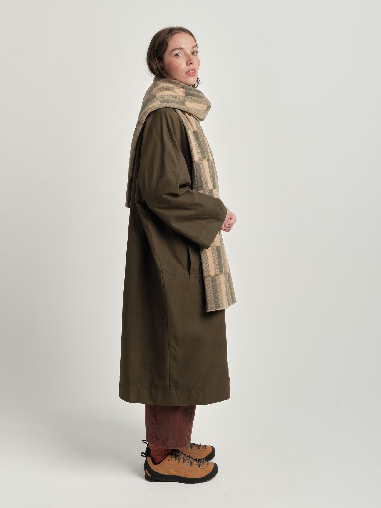 Constructed in a reversible jacquard, so the colours are swapped on the reverse. This makes for a subtle shift in emphasis and colour from one side to the other.