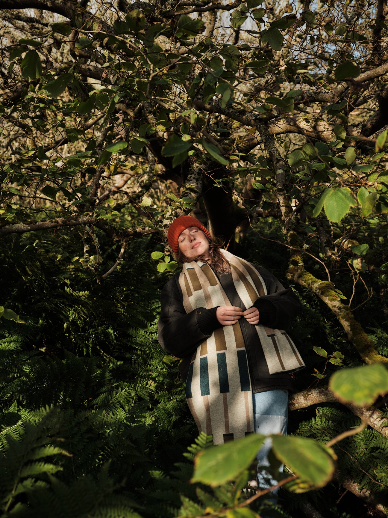 This year we scaled up our "Harbour" pattern, for a more bold and graphic effect. This version of the pattern is the one we use on our blankets — its larger expanses of single colour allows for subtler combinations of yarns, for a more tonal effect.